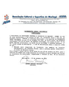 O Presidente da ASSOCIAÇÃO CULTURAL E ESPORTIVA DE MARINGÁ – ACEMA, no uso de suas atribuições e com esteio no art. 53 do Estatuto Social,…
